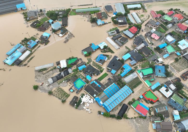 폭우 피해도 눈덩이처럼 커지고 있다. 중앙재난안전대책본부에 따르면 18일 오전 11시 기준 인명피해는 사망 4명, 실종 2명이고, 도로침수 328건, 토사유실 62건, 제방 유실 30건, 하천 범람 2건, 역사 침수 1건 등이 접수됐다. 전국 13개 시·도에서 주민 3995세대 5661명이 일시 대피 중이다. 농업 피해도 커서, 지자체들이 지난 17일 초동 조사했을 때 벼·콩·쪽파·수박 등 농작물 1만 3033ha(헥타르)가 침수됐다. 여의도 면적(290ha)의 45배 규모다.