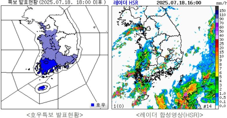 제주와 남부지방은 서쪽으로 세력을 확장하는 북태평양고기압의 경계를 따라 고온다습한 남풍이 유입되면서, 중부지방은 정체전선의 영향으로 비가 내리고 있다. 현재 수도권과 충청권, 전라권, 경상권, 제주도에 호우주의보가, 전남도와 제주 산지·북부 쪽으로 호우경보가 발효된 상태다.