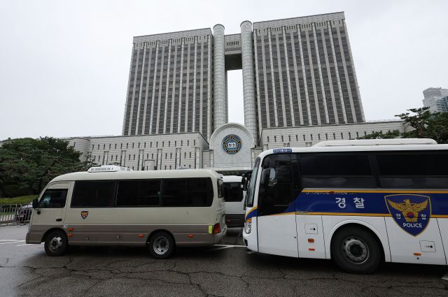 ▲윤석열 전 대통령의 구속적부심 심문이 열린 18일 서울 서초구 서울중앙지방법원에 경찰 버스가 주차돼 있다. ⓒ연합뉴스