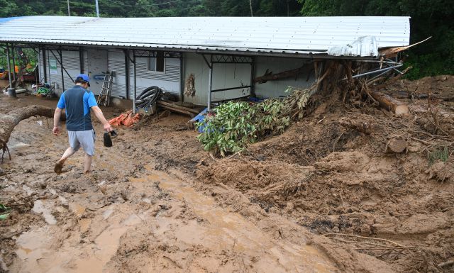 산사태 피해도 잇따랐다. 17일 시간당 60㎜에 달하는 폭우가 쏟아진 충남 청양에서는 산사태가 발생해 주민 2명이 매몰됐다 구조되는 일이 일어났다. 경북 청도와 충남 예산에서도 산사태가 발생했다. 18일 오후 6시 기준 세종, 경기 평택, 충남 공주 등 18개 지역에서 산사태 경보가, 대구 달성, 광주, 대전 등 55개 지역에서 산사태 주의보가 발령된 상태다. 축구장 약 1만 8000개에 달하는 1만 3033㏊의 농작물이 침수됐고 가축 폐사가 이어졌다.