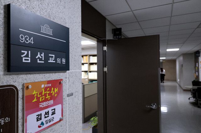 김선교 국민의힘 의원의 의원회관 사무실 모습. 김봉규 선임기자 bong9@hani.co.kr