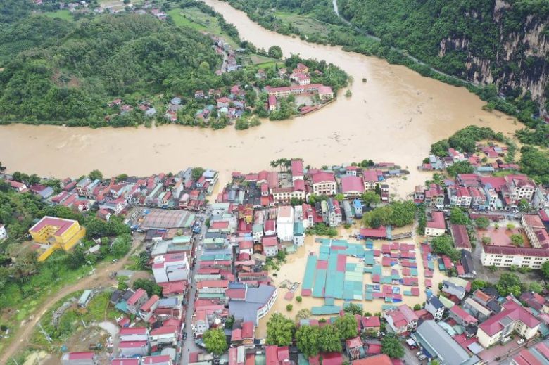태풍 야기가 지난해 9월 9일 베트남을 강타한 가운데 랑선성에서 태풍으로 인한 홍수가 발생해 주택이 침수돼 있다. 뉴시스