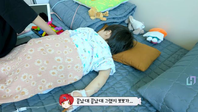 문희준은 아들 희우에 손에 꽂혀 있는 링거 바늘을 보며 안쓰럽게 생각했다. 문희준은 "링거 할 때 마음이 아프다. 주사 맞을 때마다 끝났다고 한다"라며 "지금은 잘 자고 있다"라고 말했다.