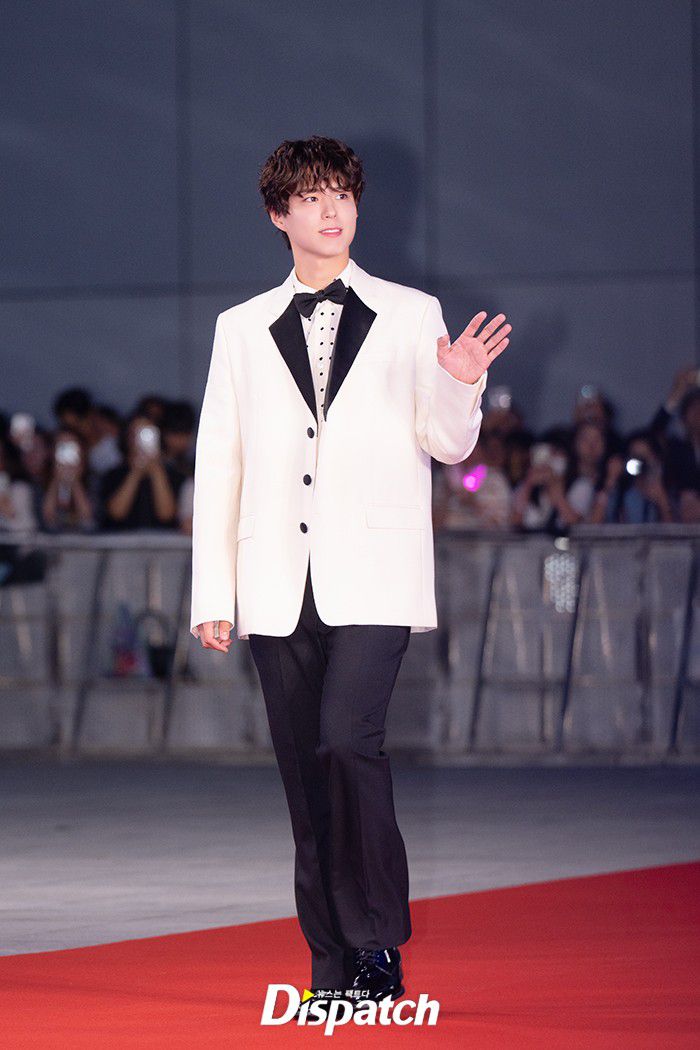 박보검은 블랙과 화이트가 매치 된 수트로 댄디한 매력을 뽐냈다. 조각같은 비주얼이 돋보였다.
