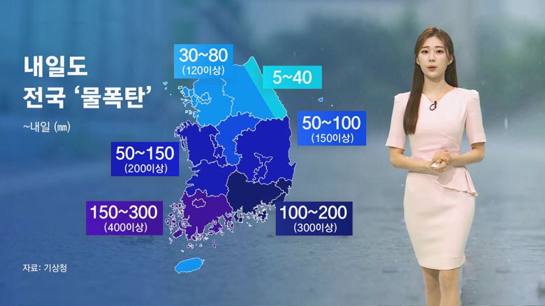남부와 제주는 내일 밤까지, 중부지방은 모레 아침까지 비가 이어지겠는데요. 전남에는 400mm가 넘는 그야말로 물폭탄이 퍼붓겠고요. 경남에도 300mm 이상, 서울을 포함한 중북부 지역에도 최대 120mm가량의 호우가 예보됐습니다. 또 바람도 거세게 불겠습니다. 더 이상의 피해가 발생하지 않도록 각별한 주의가 필요하겠습니다.
