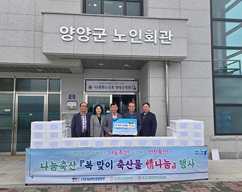 농협강원본부(본부장 김경록)와 (사)나눔축산운동본부 강원도지부, 속초양양축협(조합장 이양중)은 18일 대한노인회 양양군지회(양양군 양양읍)에서 지역 어르신들의 건강한 여름나기를 응원하기 위해 대한노인회 양양군지회에 삼계탕 400세트를 전달하는 '복 맞이 축산물 정 나눔' 행사를 실시했다.