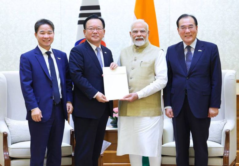 대통령 인도 특사단은 17일 나렌드라 모디 인도 총리를 예방해 한-인도 관계 강화에 대한 대통령의 메시지를 담은 친서를 직접 전달했다. 외교부 제공 |