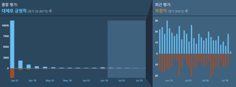 처음부터 그런 것은 아니다. 출시 일주일 만에 판매량 100만 장을 돌파했고, 첫 날엔 스팀 동시 접속자가 최대 8만 7천 여 명에 이를 정도로 많은 게이머들의 기대감을 데이터로도 확인하는 것이 가능했다.