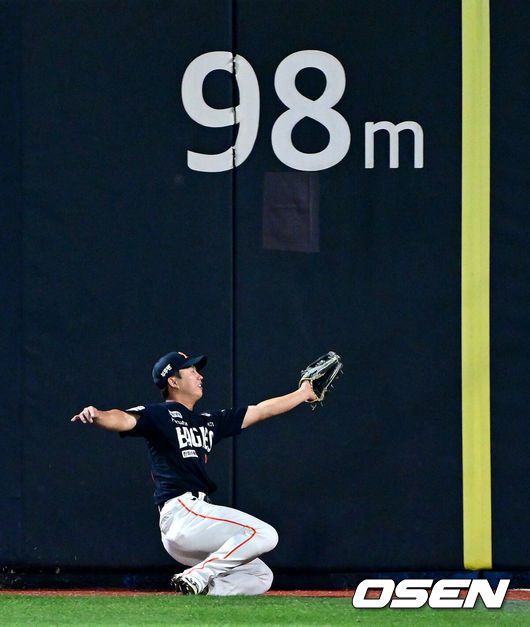 폰세 채은성 펄펄 날았지만, 이원석 몸 던진 투혼도 빛났다…김경문 극찬 “상대 공격 끊는 좋은 수비였다” [오!쎈 수원]