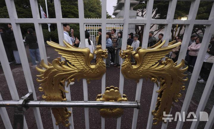 [서울=뉴시스] 김근수 기자 = 청와대 밤마실 야간개방 첫 날인 1일 서울 종로구 청와대 입구에서 입장을 기다리고 있다. 청와대재단은 1일부터 6일까지 청와대 야간 개방 행사인 '청와대 밤마실'을 진행한다. 이 행사에서는 전통 문양을 활용한 조명으로 꾸민 본관 '청와단청'과 관람객 움직임에 반응하는 '빛의 길', 숲속 같은 느낌의 '빛의 숲', 음악과 조명이 어우러진 관저의 '빛의 정원' 등 다양한 프로그램이 제공된다. 행사는 매일 오후 7시부터 9시까지 진행된다. 2025.05.01. ks@newsis.com |