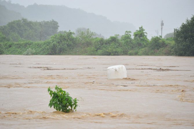 기상청은 이날 오전까지 충청도, 남부지방에 시간당 30~80㎜의 매우 강한 비가 내리겠고, 수도권과 강원 내륙·산지와 경북 북부에는 시간당 30㎜ 안팎의 비가 예상된다고 밝혔다. 이후 오후에는 수도권을 제외한 전국에 시간당 30㎜ 안팎의 비가 내리겠다.