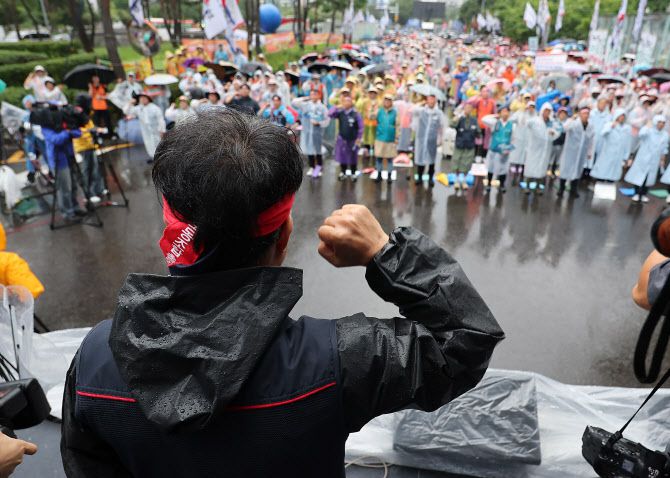 민주노총은 19 오후 3시 서울 중구 숭례문 앞 세종대로에서 7·19 민주노총 총파업·총력투쟁 대행진을 연다. 본 대회에 앞서 오전 11시에는 서울 마포구 공덕동 백범로 등 일대에서 산하 단체가 사전집회를 연다.