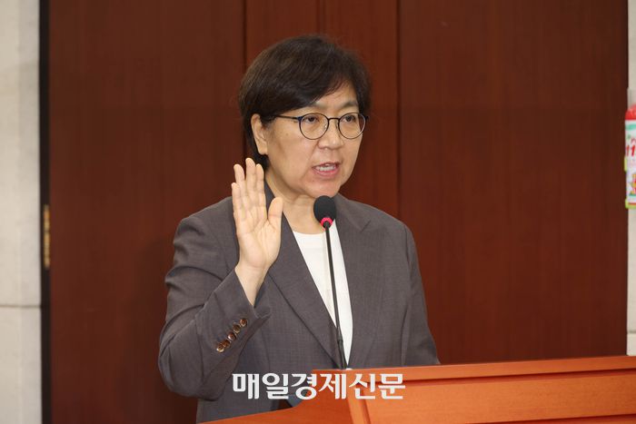 정은경 보건복지부 장관 후보자가 18일 국회 보건복지위원회에서 열린 인사청문회에서 선서하고 있다. 2025.7.18 [이충우 기자] |