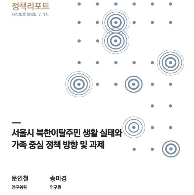 '서울시 북한이탈주민 생활 실태와 가족 중심 정책 방향 및 과제' 정책리포트 표지. |