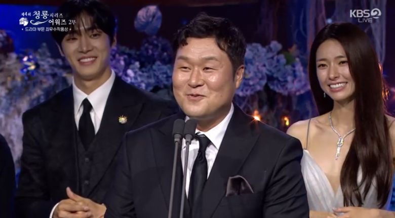 넷플릭스 '중증외상센터'는 드라마 최우수 작품상으로 선정됐다. 제작진과 배우들이 소감을 남긴 가운데, 윤경호도 마이크를 잡았다.