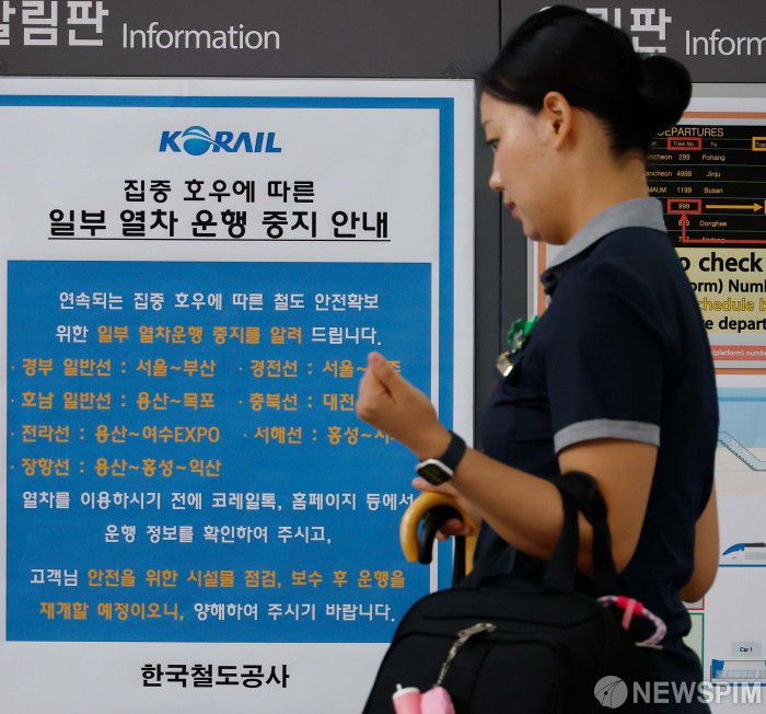 ·[서울=뉴스핌] 정영희 기자 = 집중 호우로 멈췄던 경부선 등 일부 열차의 운행이 정상적으로 진행된다.