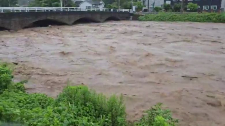흙탕물이 금방이라도 넘칠 듯, 빠른 속도로 아래로 흘러가는데요.