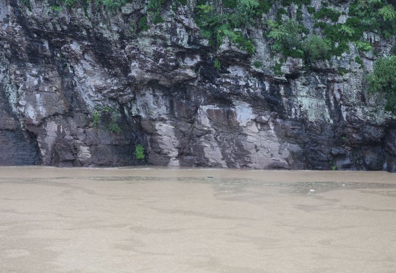 유네스코 세계유산으로 등재된 울산 울주 대곡리 반구대 암각화가 19일 호우에 사연댐 수위가 상승하면서 물에 잠겨 보이지 않고 있다. 2025.7.19 / 연합뉴스