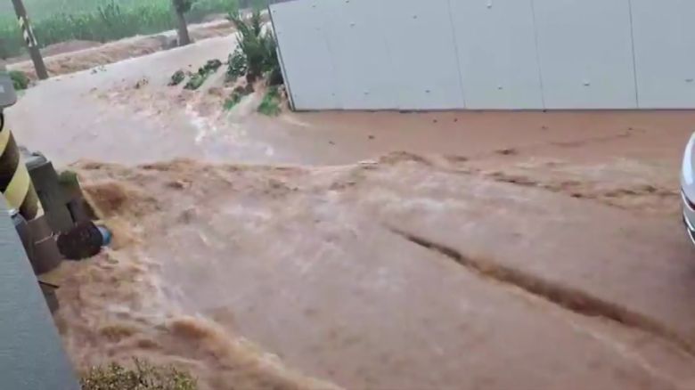 땅인지 강인지 분간이 안 되는 가운데, 퍼붓는 물의 양을 견디지 못한 듯 한쪽에 세워져 있던 임시 둑까지 무너져버렸습니다.