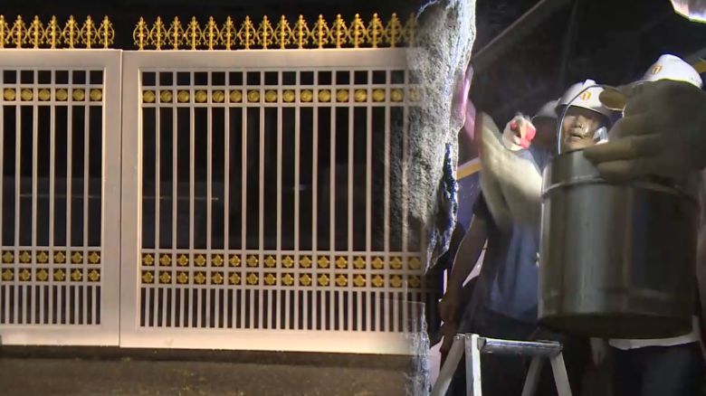 어젯밤(18일) 붉은색 스프레이 낙서로 훼손된 청와대 영빈문에 대해 긴급 복구가 이뤄졌습니다.