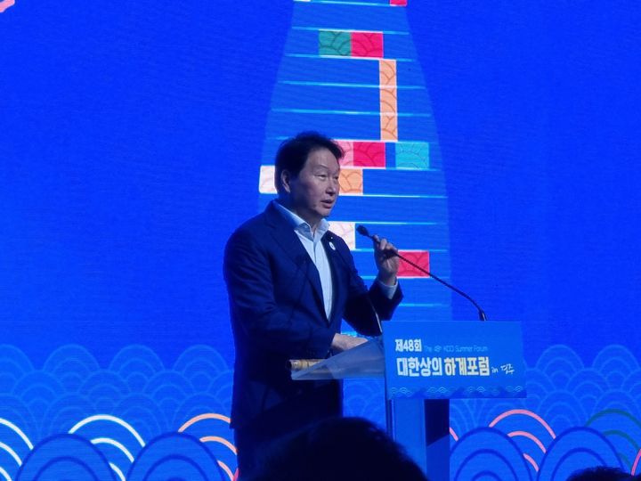 [경주=뉴시스]이지용 기자 = 최태원 대한상공회의소 회장이 19일 경북 경주 라한셀렉트에서 열린 제48회 대한상의 경주포럼 폐막식에서 폐회사를 하고 있다. 2025.07.19. leejy5223@newsis.com *재판매 및 DB 금지 |
