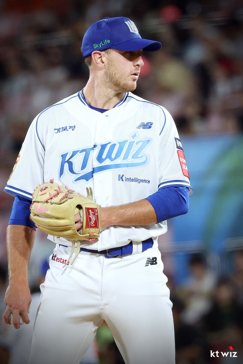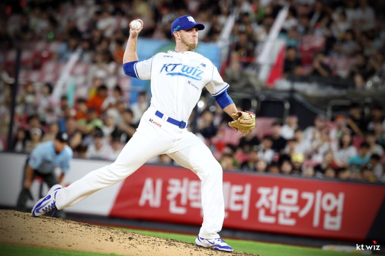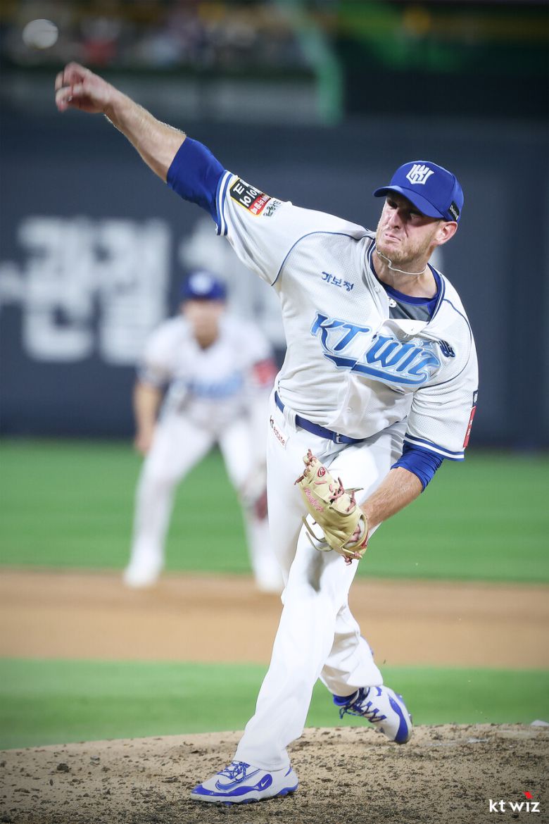 kt 위즈는 18일 수원 kt위즈파크에서 열린 '2025 신한 SOL뱅크 KBO리그' 한화 이글스와 경기에서 0-5로 졌다. 패트릭은 이미 점수 차가 5점으로 벌어진 7회 등판해 8회까지 2이닝을 책임졌다.