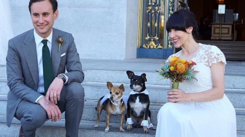 결혼식 날의 질리안과 남편, 검은색 강아지가 최근 세상을 떠난 반려견 '루퍼스'. /사진=ABC7 News |