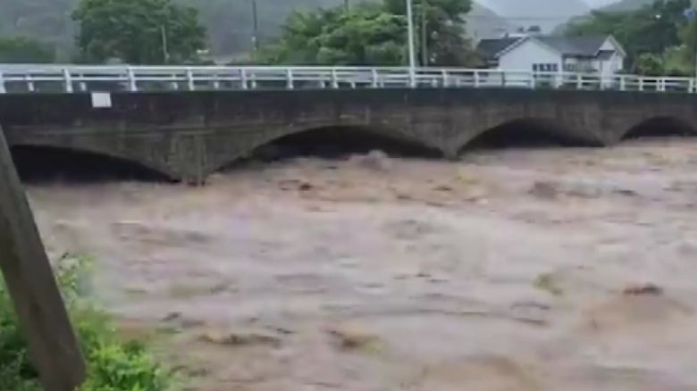 흙탕물이 빠른 속도로 흘러가는 가운데, 금방이라도 밖으로 넘칠 듯 아슬아슬한데요.