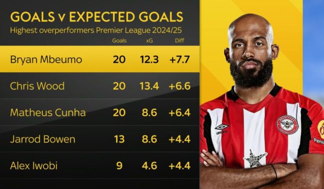 맨유가 이토록 음뵈모 영입에 절실했던 이유는 수치로도 증명됐다. 매체는 이어 "음뵈모는 지난 시즌 프리미어리그(PL)에서 20골을 기록하며 팀의 중위권 안착을 견인했다"라며 그의 득점력을 조명했다. 음뵈모는 xG값(12.3)을 훨씬 웃도는 득점(20골)을 기록하는 데 성공하며 xG값 대비 가장 훌륭한 득점력을 기록한 선수로 자리매김했다.