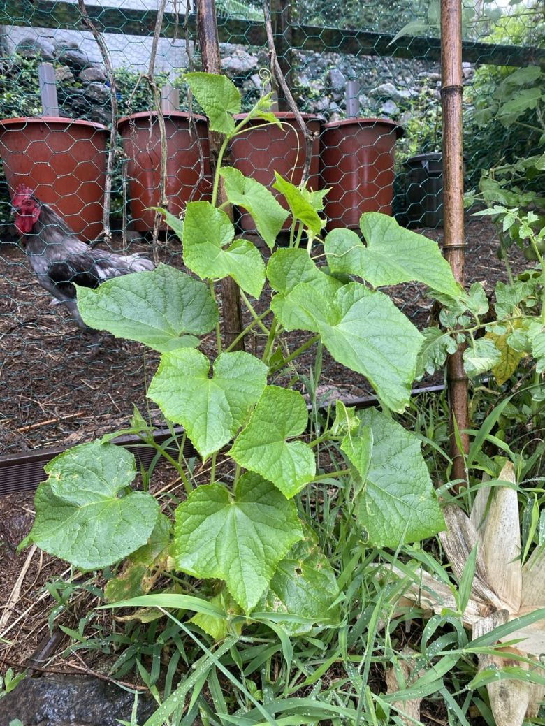 늦게 심은 토종 오이가 비를 맞으며 무럭무럭 자라고 있다. |