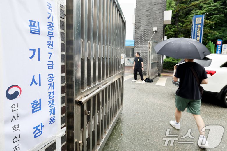 (서울=뉴스1) = 국가공무원 7급 공개경쟁채용 제1차 시험이 치러진 19일 수험생들이 서울 강남구의 한 시험장에 들어가고 있다. (인사혁신처 제공. 재판매 및 DB금지) 2025.7.19/뉴스1pizza@news1.krCopyright ⓒ 뉴스1. All rights reserved. 무단 전재 및 재배포, AI학습 이용 금지.이 기사의 카테고리는 언론사의 분류를 따릅니다.0공유하기