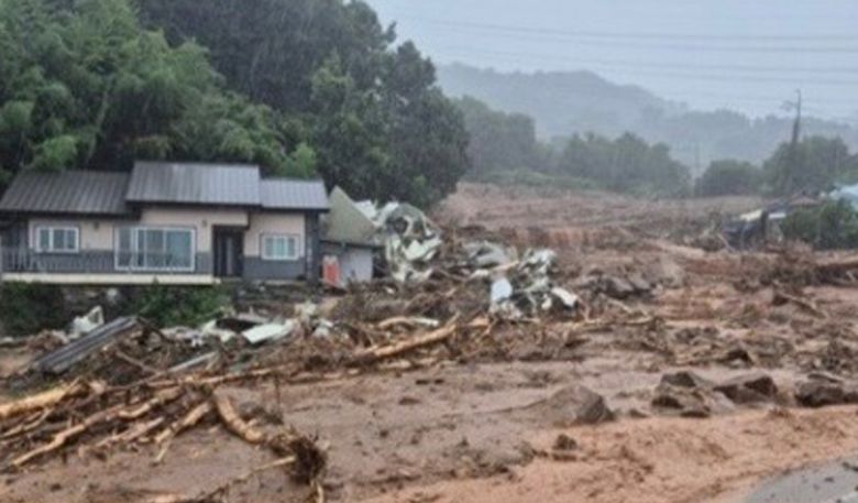 ▲ 19일 경남 산청군 산청읍 부리 마을에 폭우와 산사태로 일부 주택이 파손돼 있다.