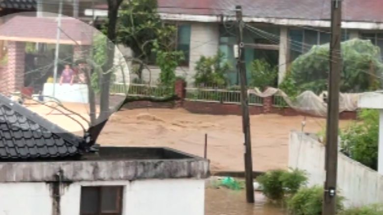 지금은 수위가 조금 내려갔지만 보시면 미처 집에서 빠져나오지 못한 주민도 있는 상황이라고 전했습니다.