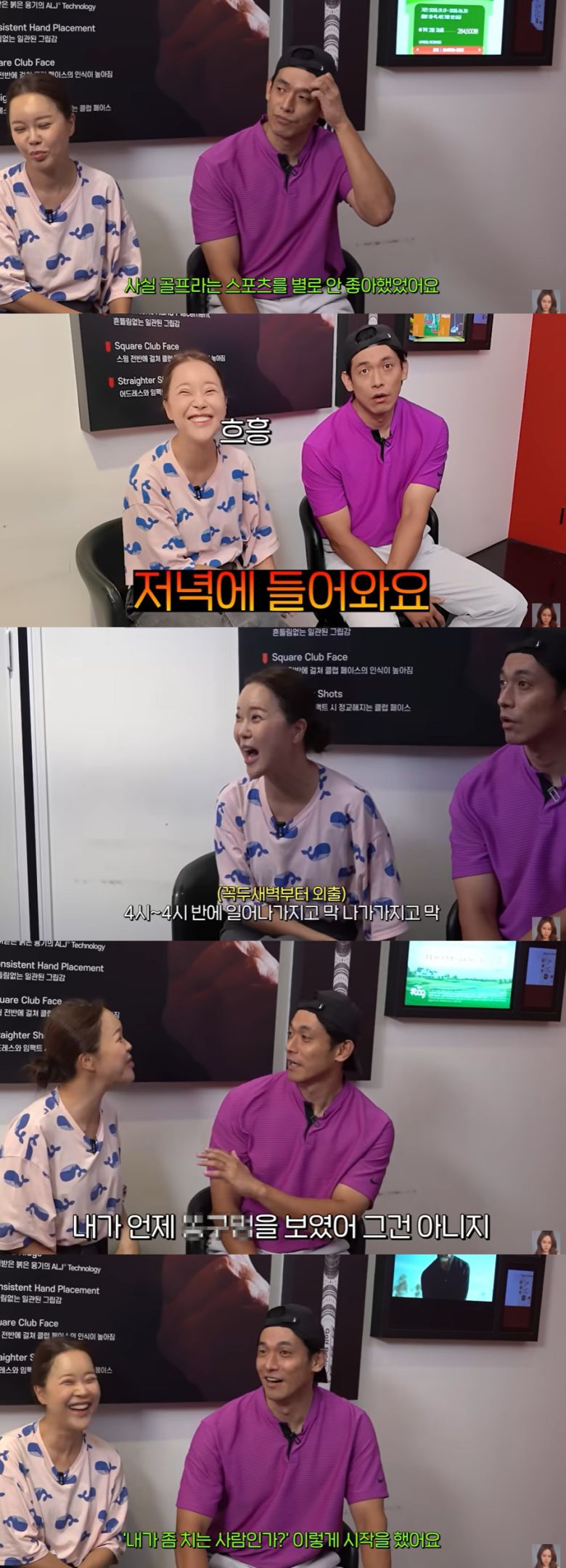이에 제작진은 "먼저 칠 때 왜 같이 안 배웠냐"라며 묻자, 정석원은 "저는 골프라는 스포츠를 별로 안 좋아했다. 부정적으로 생각했던 건 이 사람이 아침에 나가면 저녁에 들어온다"라고 털어놨다.