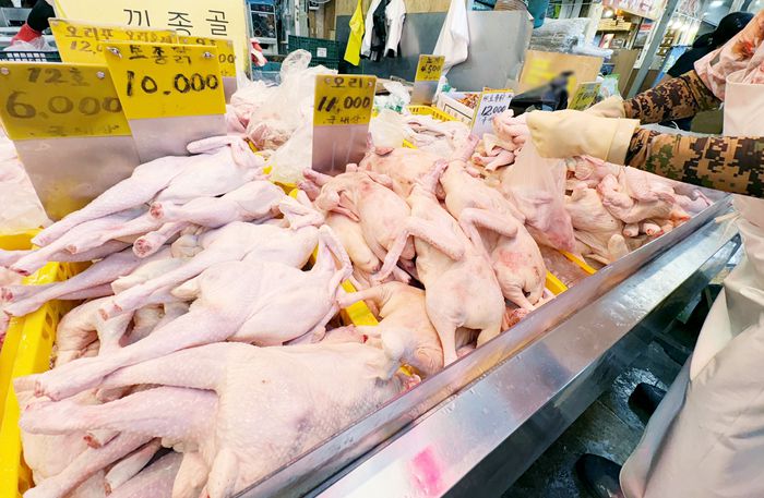 17일 서울의 한 전통시장에서 닭을 진열하는 상인. [사진 출처 = 연합뉴스]