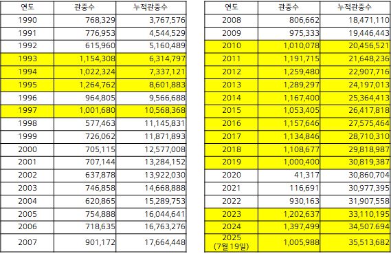 47경기 100만 관중은 지난해 53경기를 무려 6경기나 단축한 결과다.