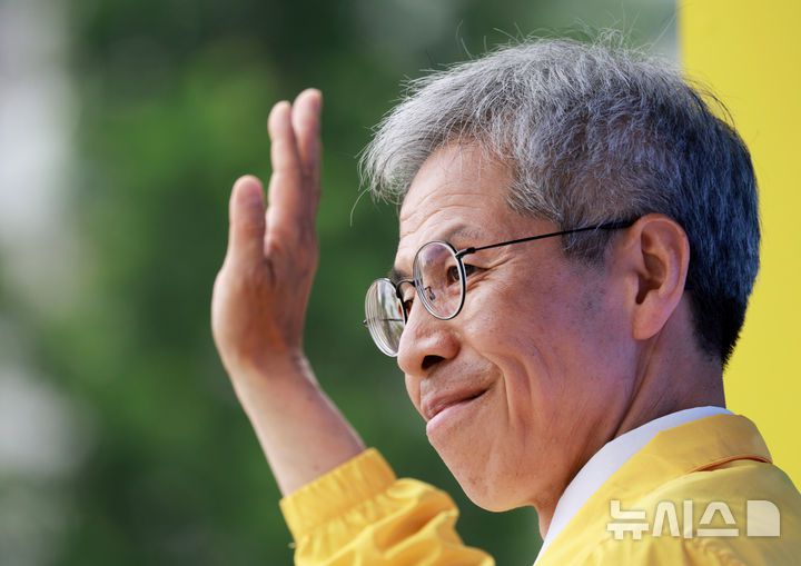 [서울=뉴시스] 고범준 기자 = 권영국 민주노동당 대선 후보가 지난 6월2일 서울 종로구 광화문 해태상 인근에서 21대 대통령선거 하루를 앞두고 지지를 호소하고 있다. 2025.06.02. bjko@newsis.com |