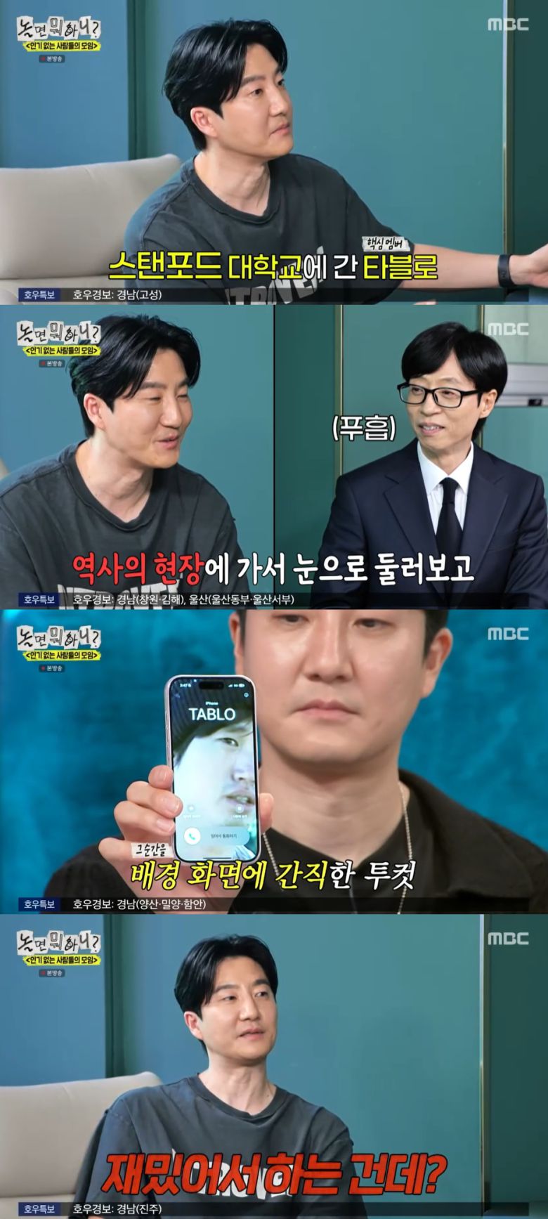 투컷은 "타블로가 스탠퍼드 대학교에 가 있다. 그러면 우리가 한번 가자. 역사의 현장에 가서 눈으로 둘러보려고 한다"라며 타블로의 학력 위조 의혹인 '타진요' 사건을 언급했다.