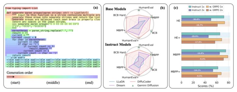 애플은 홍콩대학교 연구진과 16일(현지시간) 1300억개의 코드 토큰으로 학습한 70억 매개변수의 dLLM '디퓨코더(DiffuCoder)'에 관한 논문을 아카이브에 게재했다. 모델은 깃허브에서 오픈 소스로 다운로드할 수 있다.