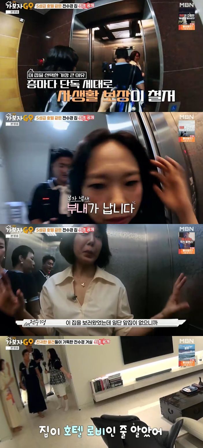 이날 전수경의 집이 최초로 공개됐다. 특이하게도 한 층에 단 한 세대만 거주하는 구조였으며 전수경은 "그래서 선택했다"고 밝혔고, 이를 들은 홍현희는 "부내가 난다"고 감탄했다.