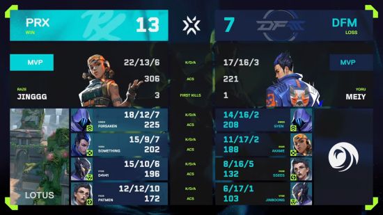 오늘 두 번째 매치의 주인공은 데토네이션 포커스 미(DFM)와 페이퍼 렉스(PRX).