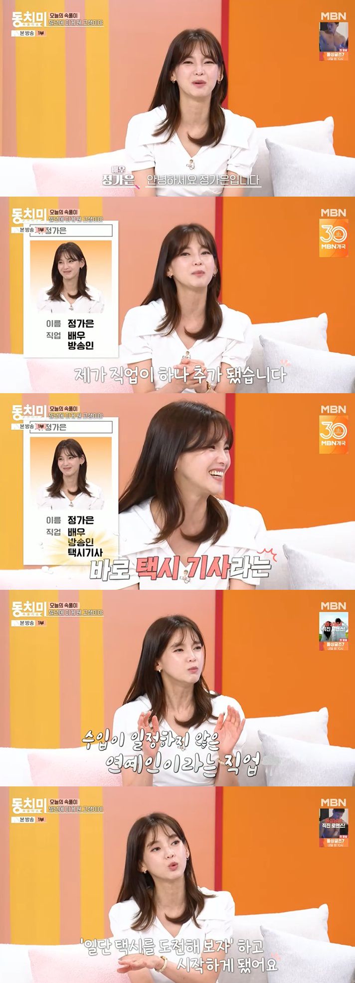 이날 정가은은 "정가은을 검색하면 아시다시피 배우, 방송인이라고 직업이 나오는데 제가 직업이 하나 추가 됐다"라며 택시 기사가 된 근황을 전했다.