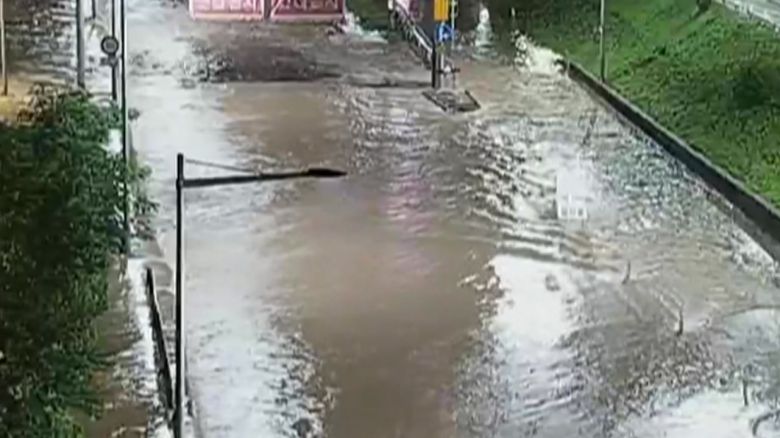 나무까지 잠길 정도로 하천이 불어났고, 물은 도로 위로까지 넘칠락 말락 하는 모습인데요.