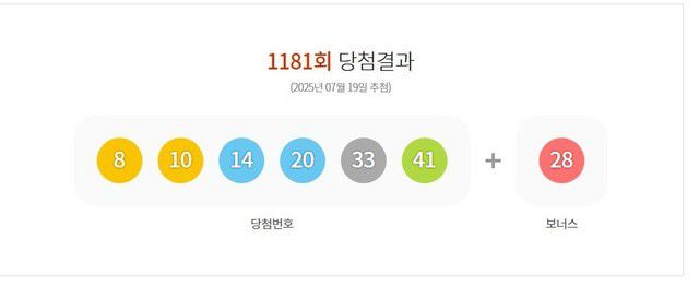 19일 1181회 로또 1등 당첨 번호는 '8·10·14·20·33·41'로 결정됐다. 보너스 번호는 '28'이다.