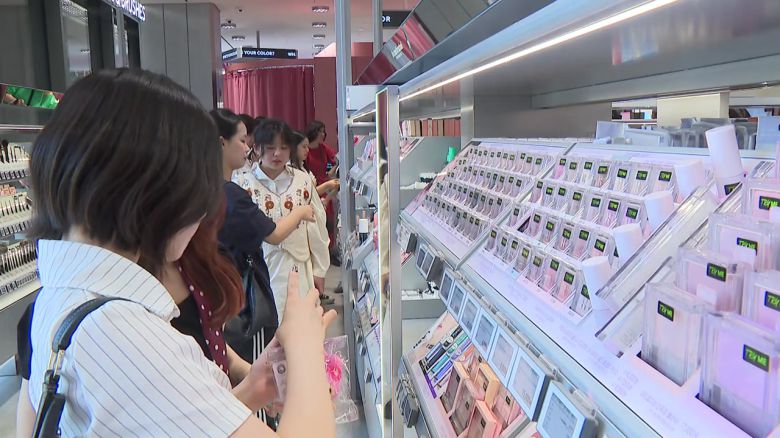한국 화장품을 사기 위해 방문한 외국인들로 발 디딜 틈이 없습니다.