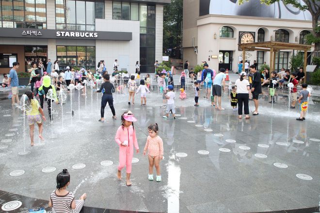 무더위를 식힐 수 있는 바닥분수와 그늘 정자, 평상. 서울관광재단 제공. |