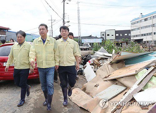 (서울·아산) 연합뉴스 = 이슬기 오규진 기자 = 더불어민주당 지도부는 20일 기록적인 폭우가 내린 충남 아산의 수해 현장을 찾아 피해 상황을 점검했다.