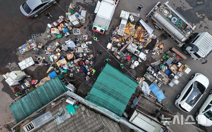 [대구=뉴시스] 이무열 기자 = 18일 대구 북구 노곡동 한 가정집에서 주민과 자원봉사자들이 침수 피해 복구 작업을 하고 있다.노곡동 일대는 전날 내린 집중호우로 인해 물에 잠겼다. 2025.07.18. lmy@newsis.com |