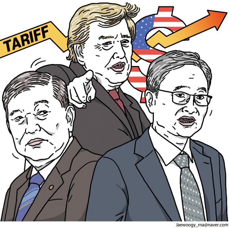 반대로 일본은 자동차 관세를 ‘결코’ 받아들 수 없다는 입장이다. 이시바 시게루 일본 총리는 “자동차는 정말 (일본한테) 커다란 국익이다”(6월16일), “쌍방 모두의 이익” 실현을 위해 “몸이 가루가 되도록 열심히 협상 중이다”(7월2일), “안이한 타협은 피하겠다. 요구할 것은 요구하고 지킬 것은 지킨다”(8일)고 거듭 말했다. 그러자 도널드 트럼프 미국 대통령은 13일 “일본은 너무너무 급격히 방침을 바꾸고 있다. 우리 자동차를 받아들이려 하지 않고, 농산물도 대부분 받아들이지 않을 것”이라고 불만을 터뜨렸고, 이틀 뒤엔 “일본이 시장을 개방하지 않는다면 우리는 서한대로(상호관세 25% 부과) 할 것”이라고 위협했다.