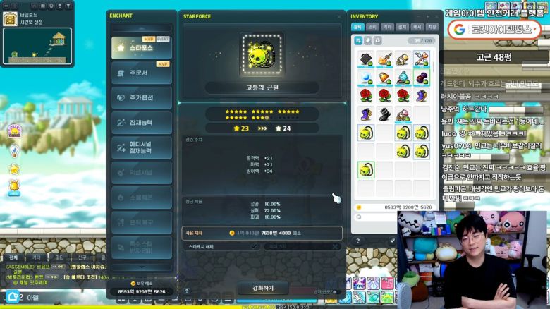 샤타포스도 빠지지 않았다. 20일이 되자마자 스트리머들은 강화에 도전했다. 젠지 팬으로 e스포츠 월드컵 2025 현장 응원 중인 안녕수야는 사우디아라비아 현지에서 강화를 도전하는 메진녀의 모습을 과시했다.